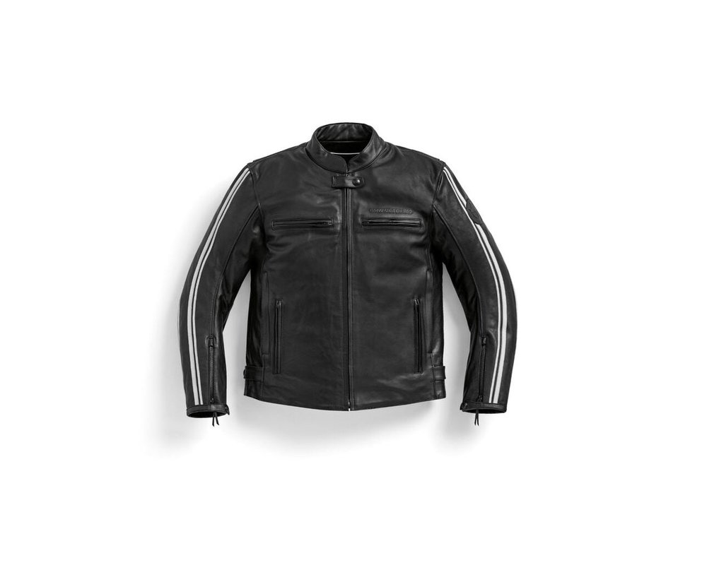 Kožené pretekárske prúžky, ktoré sa tiahnu po dĺžke paží, dodávajú chladnému, zatemnenému vystupovaniu určitú dravosť a rozbíjajú veľké, neporušené panely prémiovej kože.
