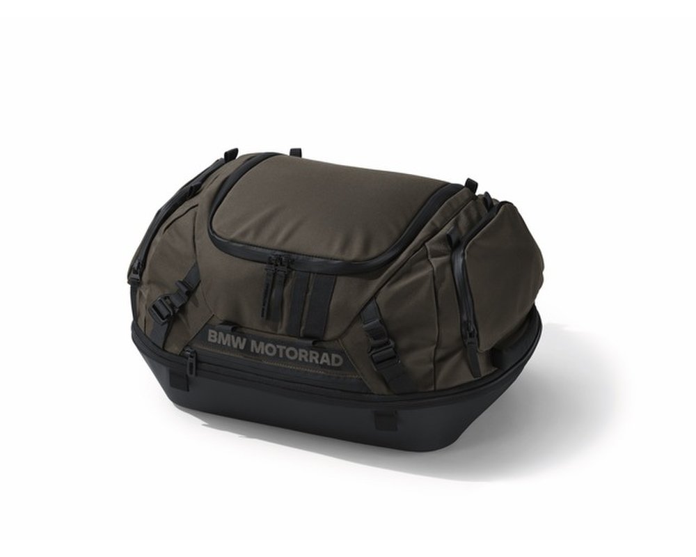 Malá zadná taška Adventure Collection z odolnej nylonovej tkaniny sa dá zväčšiť z 37 na 45 litrov – ideálna na kratšie cesty. Dá sa namontovať na nosič na batožinu alebo na sedadlo spolujazdca pomocou upevňovacích pásov. Zadná taška sa môže použiť aj ako batoh na chrbát alebo ako taška na rameno. Priestorovo úsporné uloženie, keď sa nepoužíva.