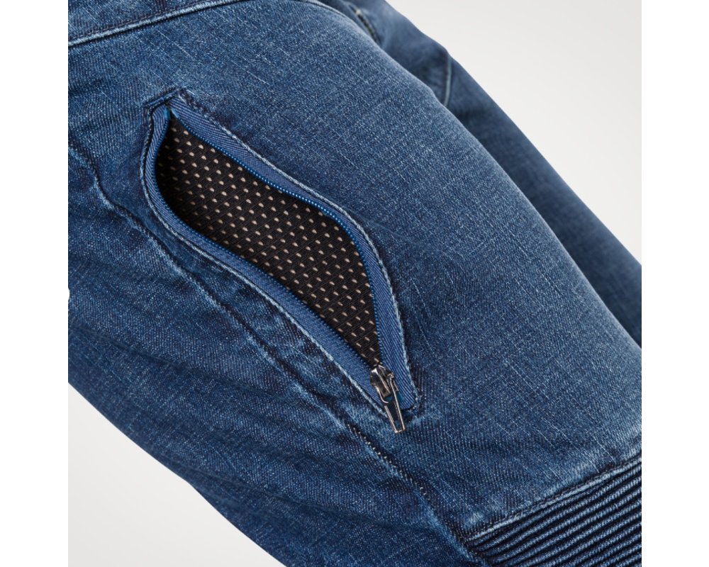 Dvojité ventilačné otvory strategicky umiestnené na stehnách pre vysoký prietok vzduchu, regulované zipsom