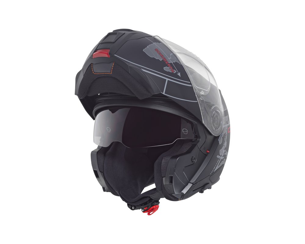 Schuberth C5 je prémiová výklopná prilba s homologizáciou ECE 22.06 a P/J, ktorá ponúka maximálnu bezpečnosť, tichú jazdu a vysoký komfort. Disponuje pokročilým odvetraním, Pinlock plexi a prípravou na ...
