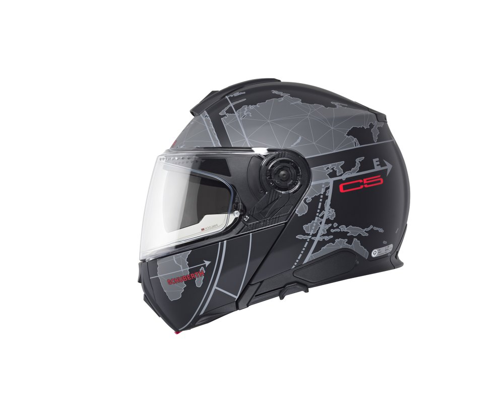 Schuberth C5 je prémiová výklopná prilba s homologizáciou ECE 22.06 a P/J, ktorá ponúka maximálnu bezpečnosť, tichú jazdu a vysoký komfort. Disponuje pokročilým odvetraním, Pinlock plexi a prípravou na interkom SC2 – ideálna na dlhé trasy aj každodenné jazdenie.