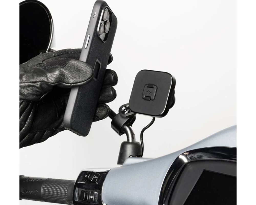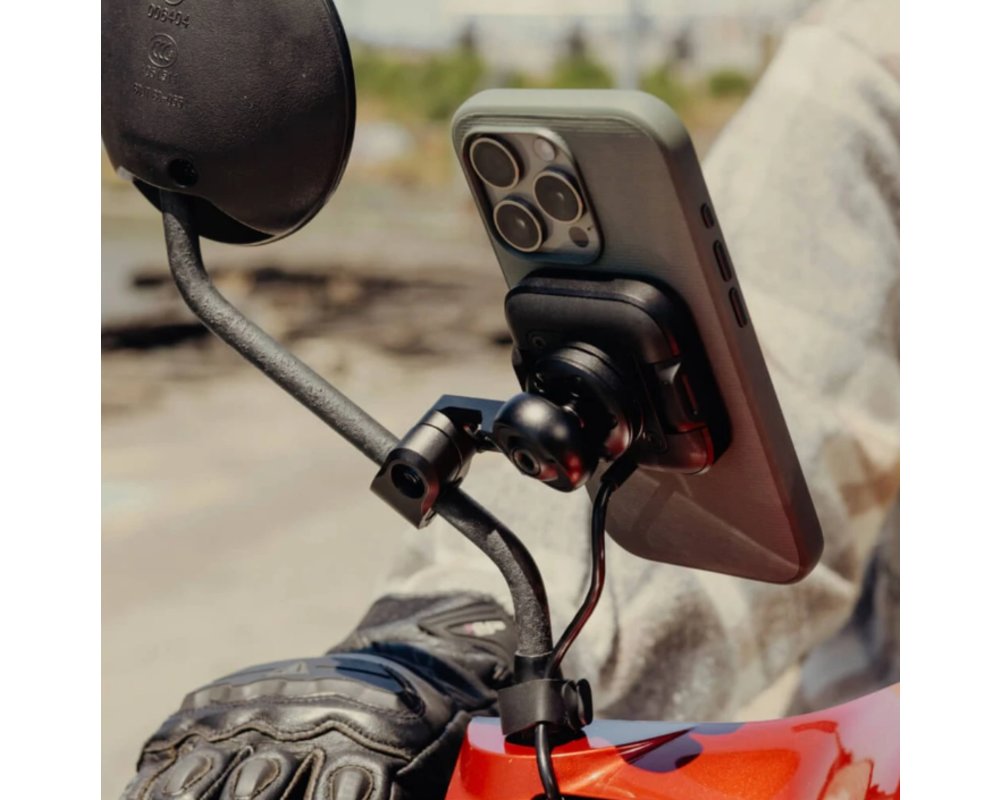 Držiak na zrkadlo motorky od Peak Design predstavuje ideálne riešenie pre bezpečné a pohodlné upevnenie vášho telefónu na skúter alebo motocykel. Vďaka premyslenému dizajnu ho ľahko pripevníte na zrkadlové tyče, navigačné priečniky a rôzne lišty s priemerom 10 až 16 mm. Váš telefón bude nielen pevne držaný a okamžite prístupný, ale s voliteľnou Qi2 bezdrôtovou nabíjacou verziou sa bude nabíjať až dvakrát rýchlejšie. Patentovaná technológia SlimLink™ kombinuje silné magnety a mechanický zámok pre intuitívne uchytenie a uvoľnenie telefónu jediným stlačením tlačidla, a to aj v rukaviciach.
